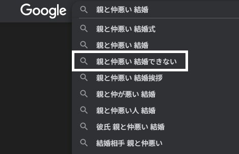 検索エンジンでは「親と仲悪い 結婚できない」というキーワードで検索されていることがわかっておりますが、こちらのキーワードの検索意図について検討していきます。