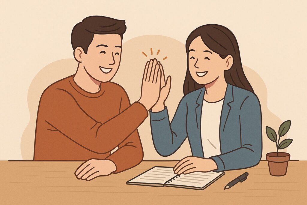 選択と結果は日付付きで記録し、うまくいった要因(成功要因)と言葉づかいを言語化すると、自己効力感が回復し、次の行動が軽くなります。これは感情論ではなく、認知行動療法の枠組みに沿った実装可能な戦略です。