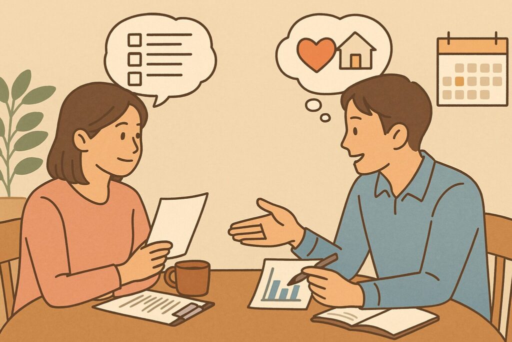 まず概況を共有し、次に返済と貯蓄の計画を提示、最後に想定リスクと回避策を説明します。段階的な開示により、感情的な不安を和らげ、建設的な対話が進みます。